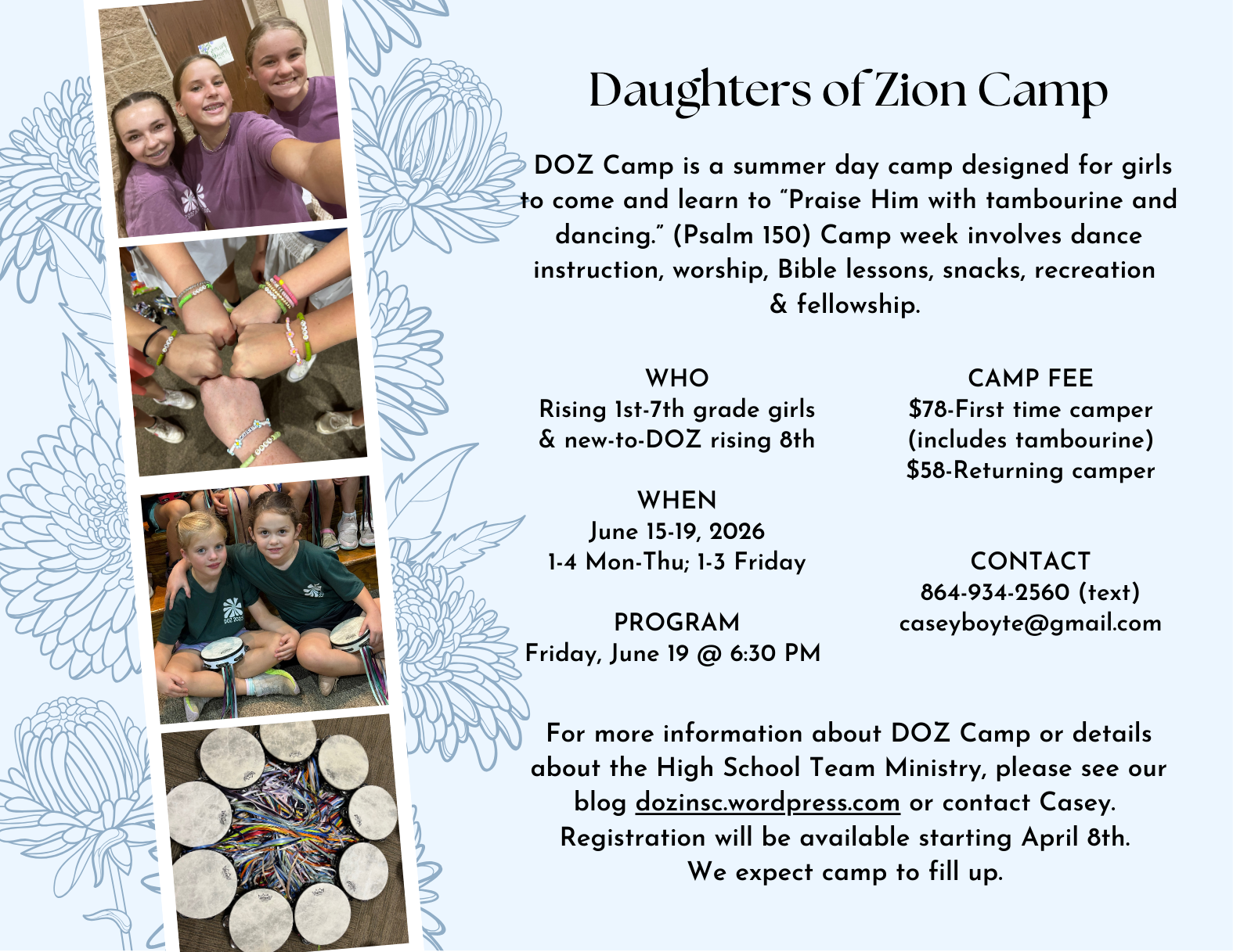 Questions regarding children ministry contact Leila Sconyers, Youth and Family Life Ministry Coordinator: sconyers@ncchurch.net